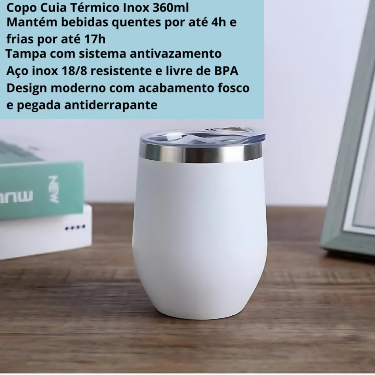 Copo Cuia Térmico Inox com Tampa Antivazamento 360ml – Ideal para Bebidas Quentes ou...