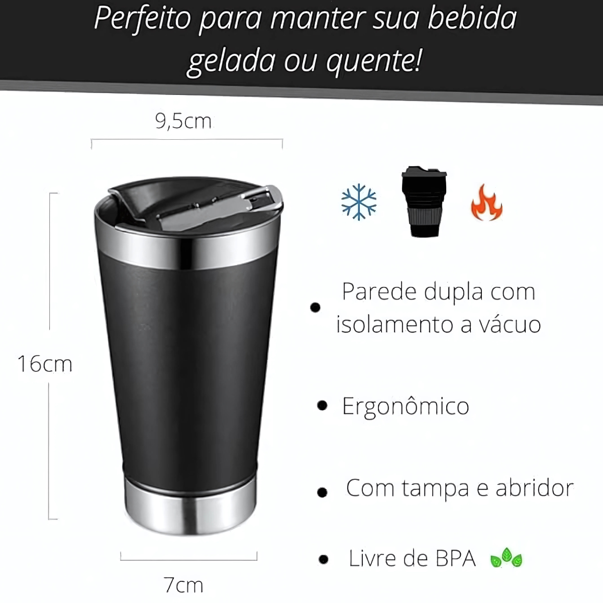 Copo Termico Inox 473ml com Tampa e Abridor de Garrafas