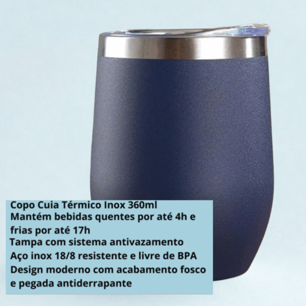 Transforme sua rotina com o Copo Cuia Térmico Inox 360ml. Perfeito para café, chá, água ou bebidas geladas, este copo mantém a temperatura ideal por horas, oferecendo praticidade e conforto em qualquer lugar.