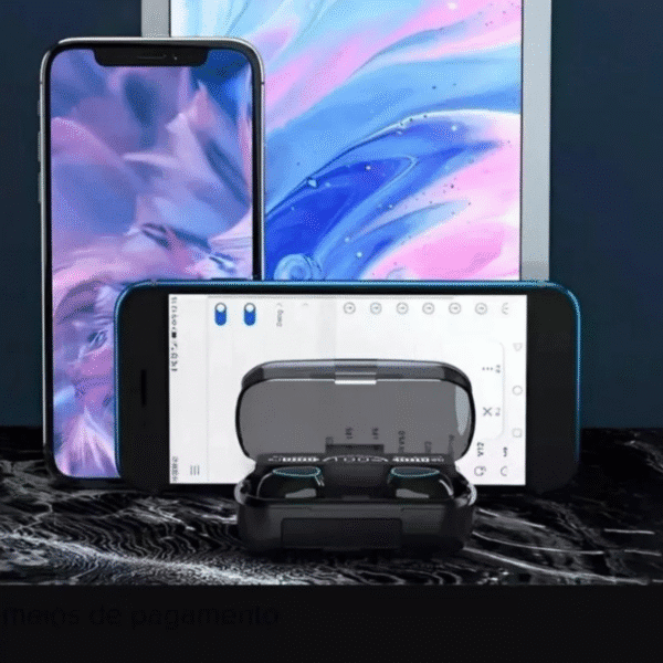 Tipo de Display: Digital com indicação da carga da case e dos fones